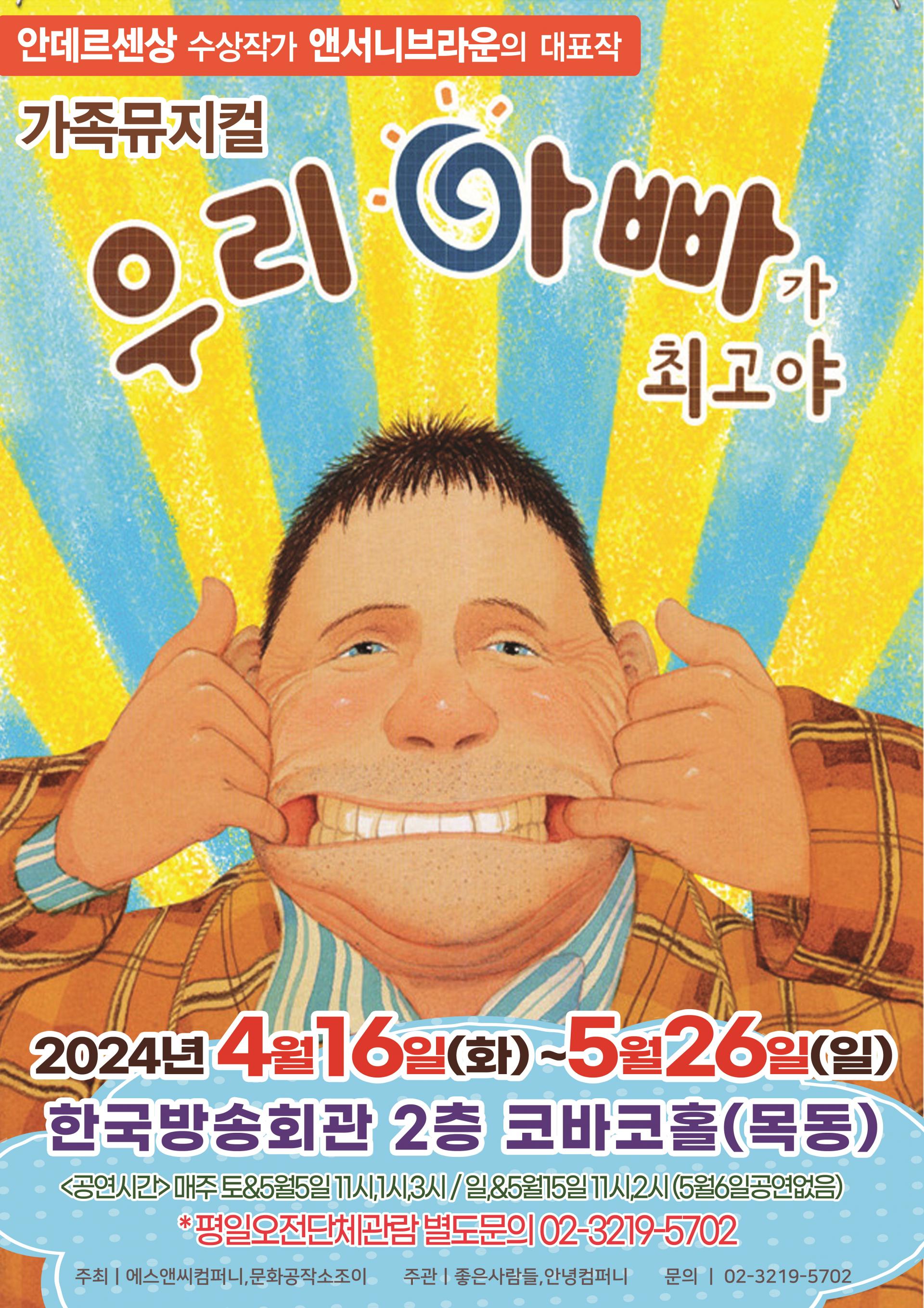 <2024년 4,5월 공연> 앤서니브라운가족뮤지컬 <우리 아빠가 최고야> 예매처 안내