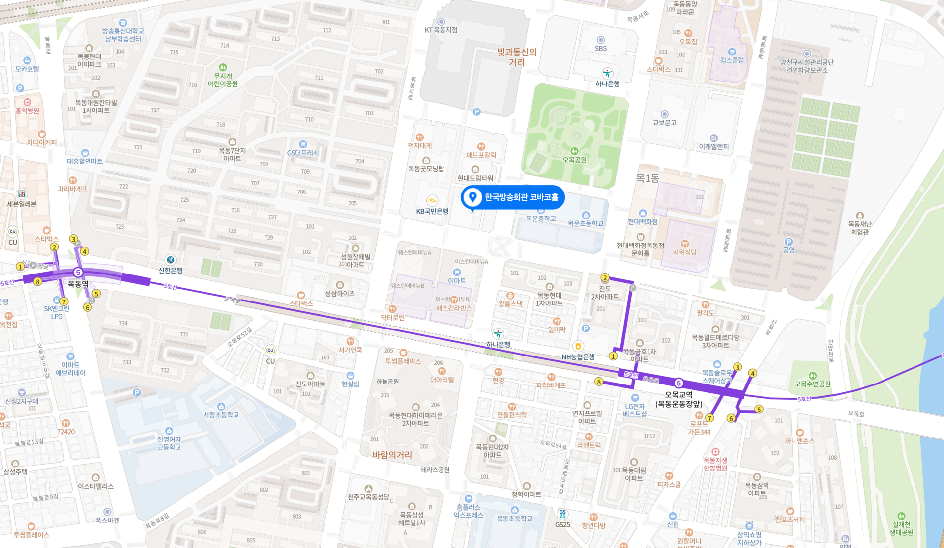 지하철 : 지하철 5호선 오목교역 하차